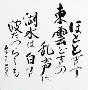 ![]() 題名「吉日」 大きさ:半切 〈受賞者のことば〉 ご都合により省略しました。 |